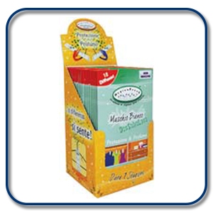 - Espositore con valigette profumate disponibili in 4 fragranze: Talco, Agrumi e Té Verde, Lavanda, Fiori Bianchi. Ogni espositore contiene 108 pezzi ed è perfetto per la vendita al pubblico.